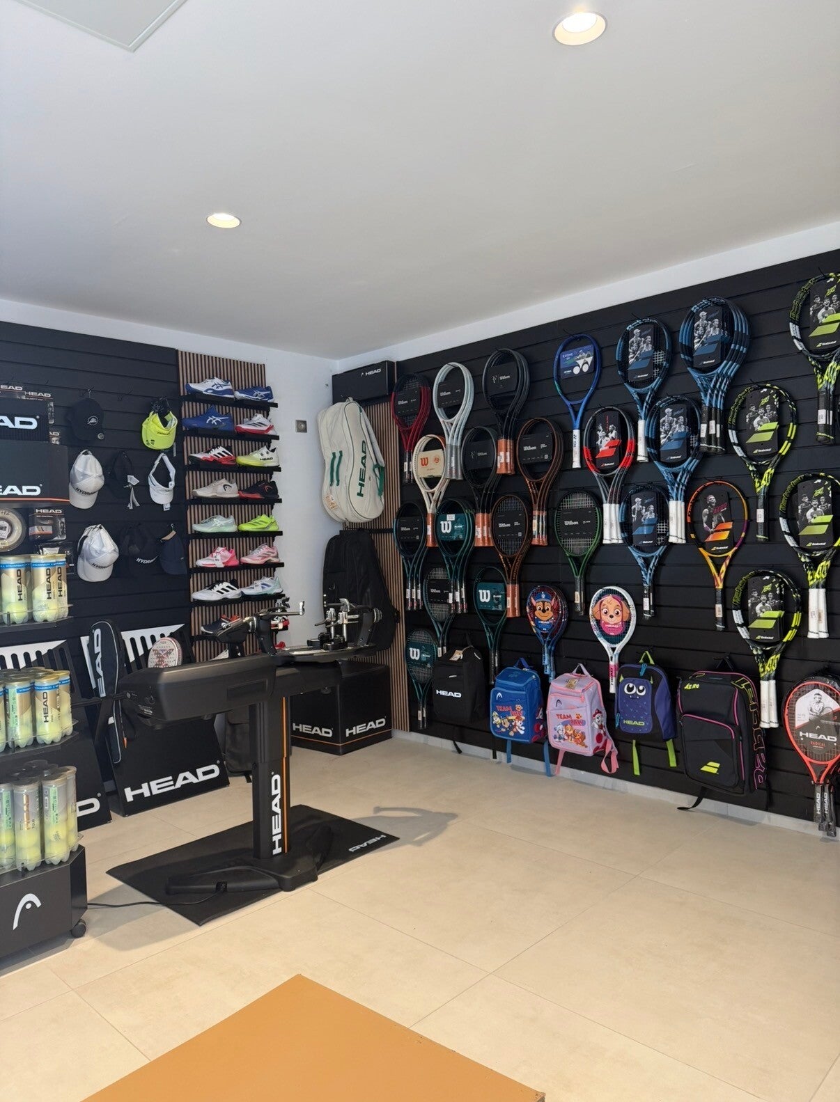 Le ProShop est directement intégré au club, ce qui permet aux joueurs de s’équiper ou de faire corder leur raquette avant ou après leur partie, en toute simplicité.