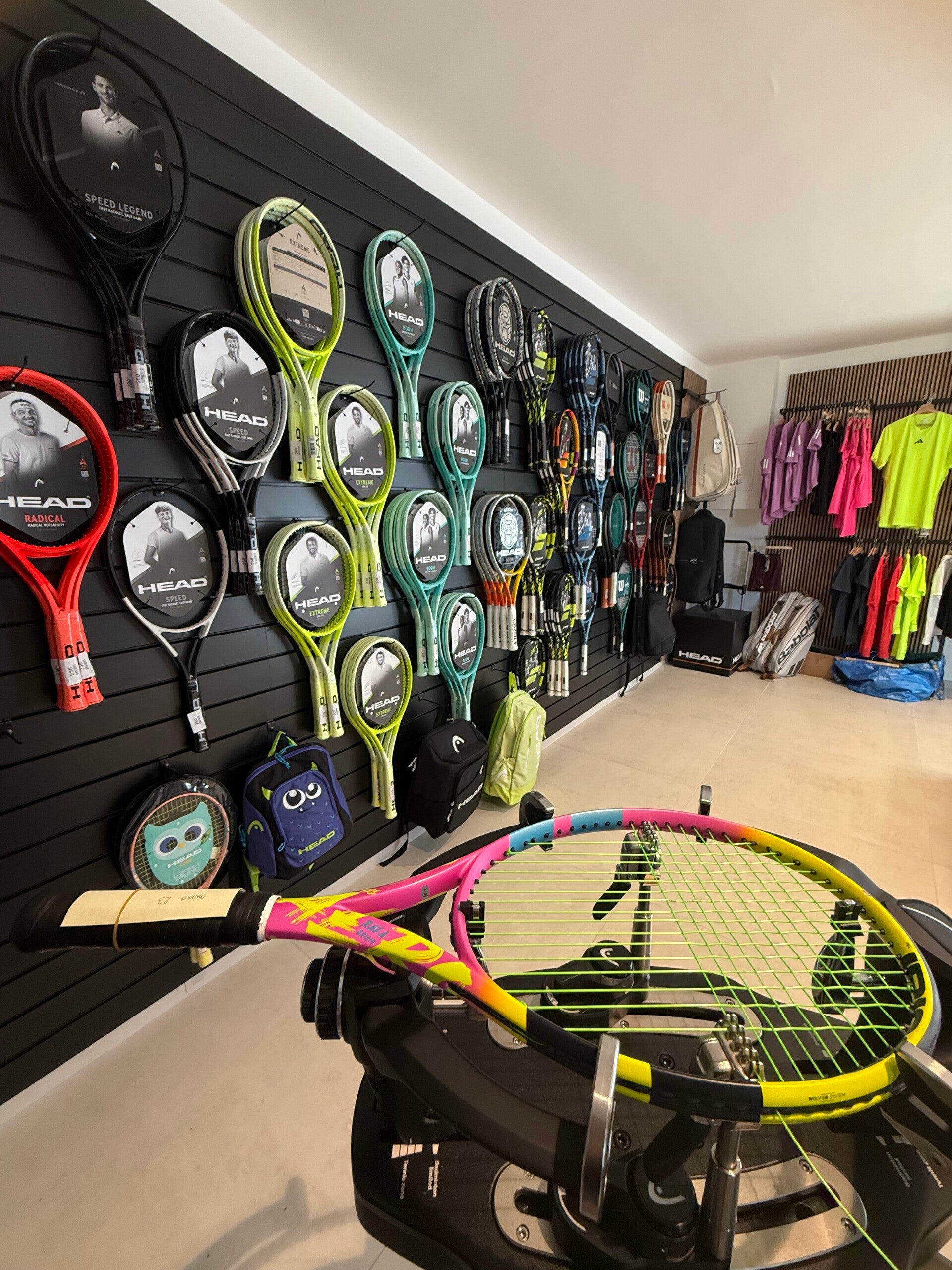 Plongez dans l'univers du cordage professionnel avec ProShop Saint-Tropez. Nous adaptons chaque choix de cordage à votre style, votre niveau et vos ambitions, garantissant ainsi confort, contrôle et puissance à chaque frappe. Notre engagement : un travail soigné et des conseils sur-mesure.